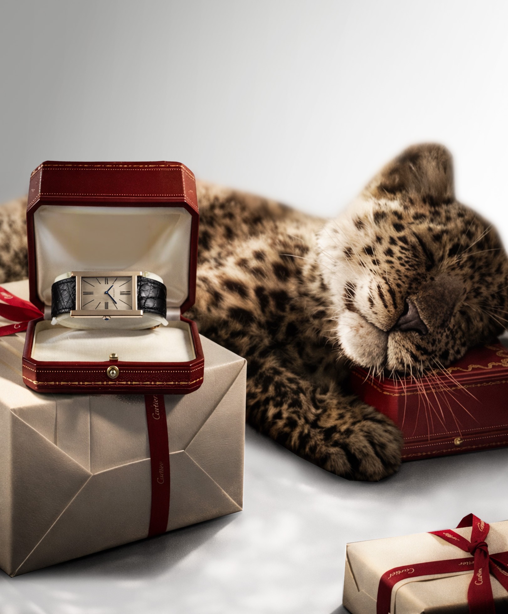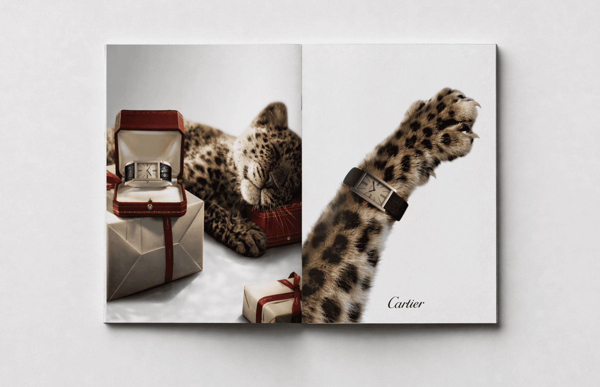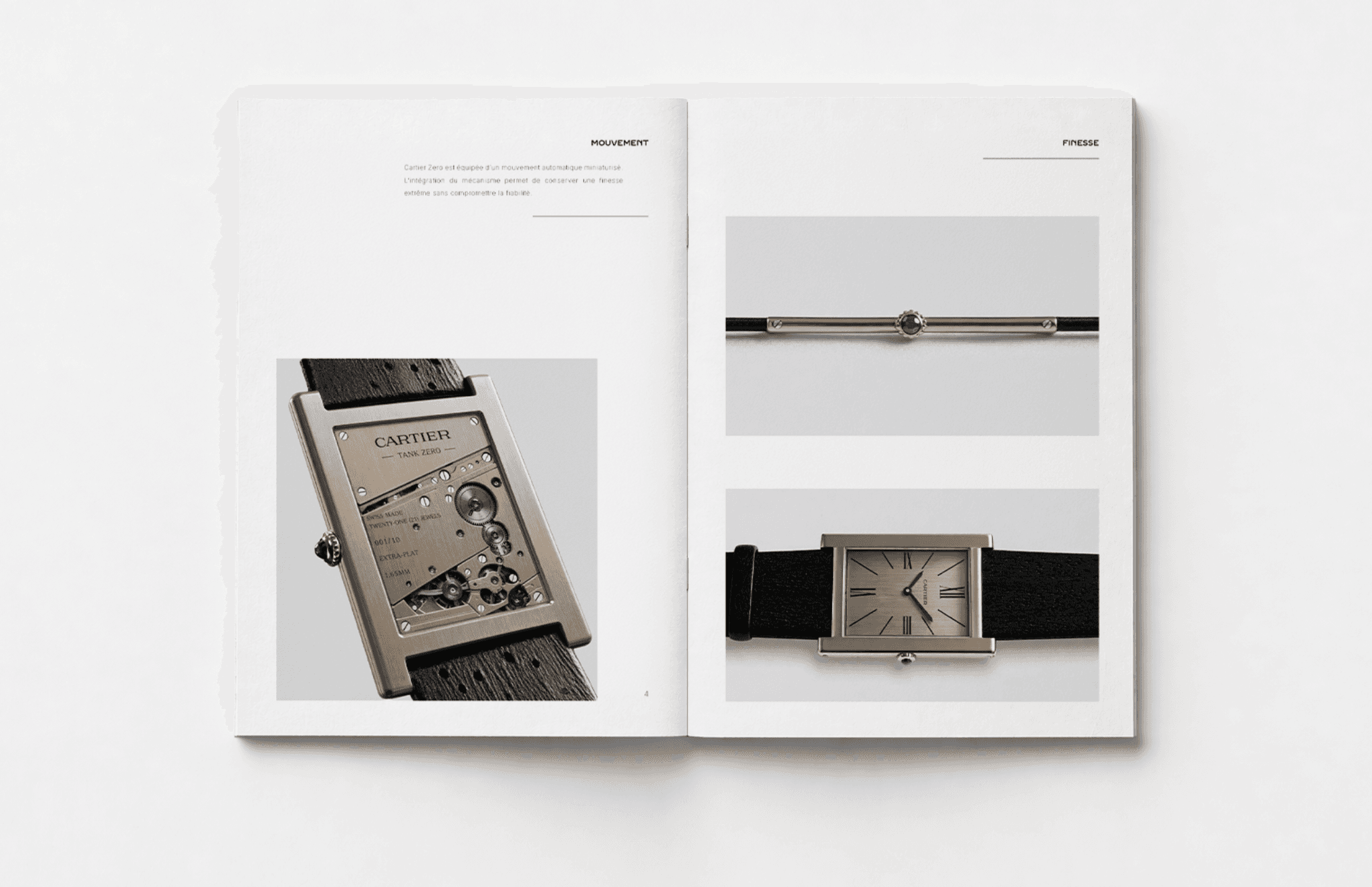 Tank Zero is a minimalist and ultra-thin reinterpretation of the Tank, designed as an almost invisible object. The project is built around a strong storytelling centered on the panther, expressed through posters, as well as an immersive scenography for Watch & Wonders. A presentation booklet completes the project, creating a cohesive experience between product, image, and space.